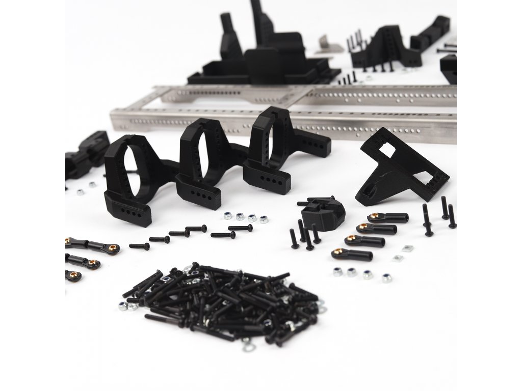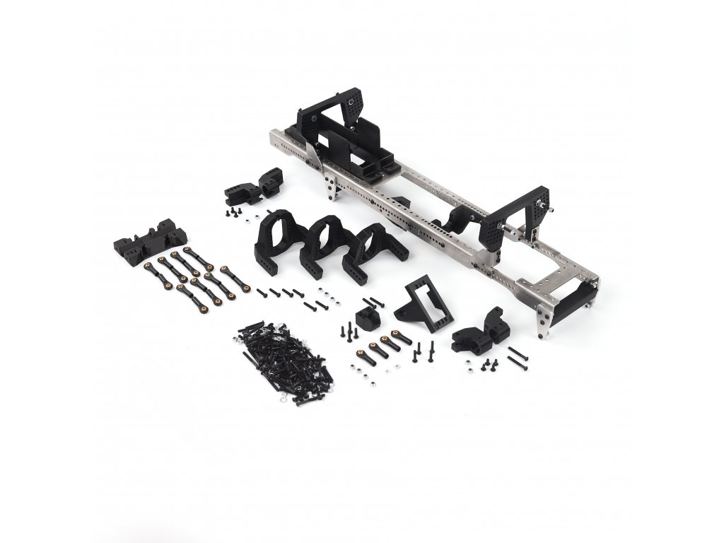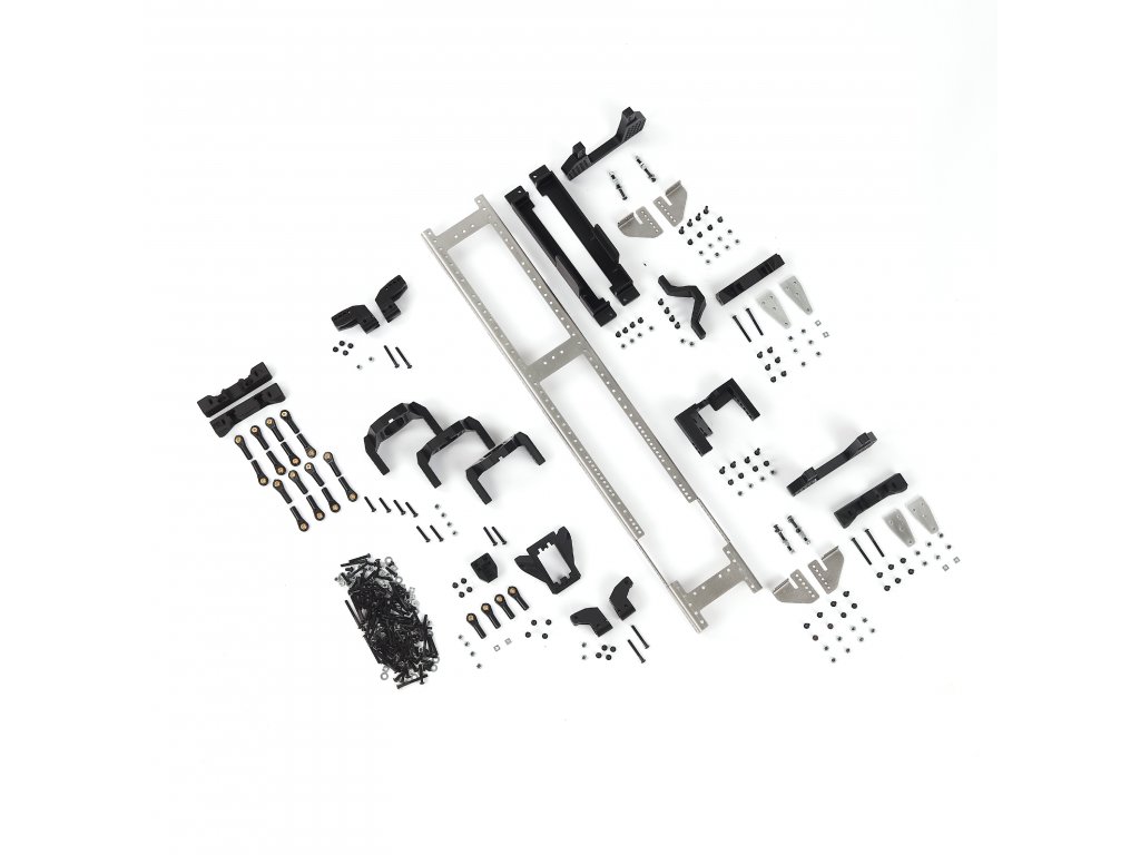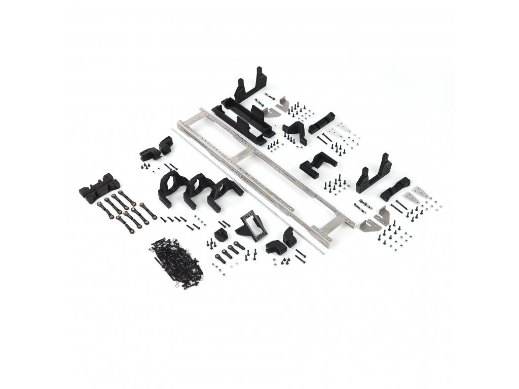Basic frame version 3.0 for the construction of the chassis of RC Truck Models. Building kit. Possibility to adjust the wheelbase from 320 to 350 mm. Variable mounting of gearbox, shock absorbers, gearbox. The frame is compatible with all our truck models.