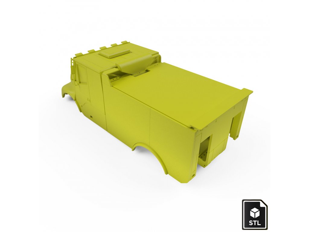 STL files for 3D printing of the IVECO truck model in 1:12 scale. Compatible with chassis for RC Truck Model of our design.