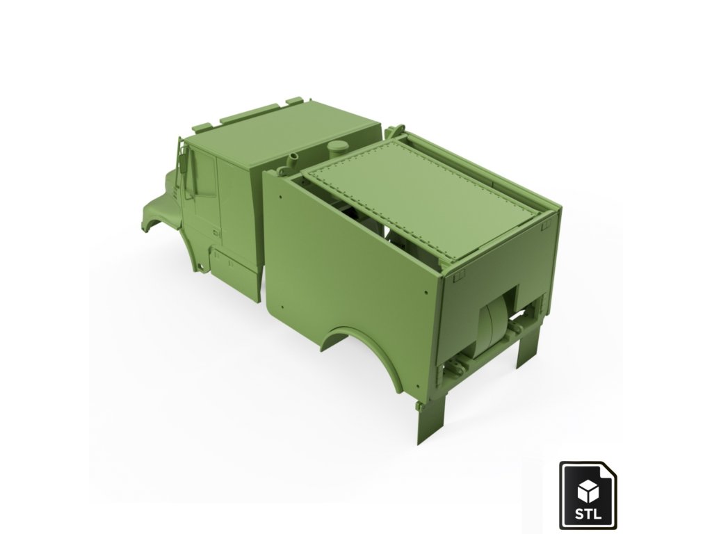 STL files for 3D printing of the IVECO Torpedo truck model in 1:12 scale. Compatible with chassis for RC Truck Model of our design.