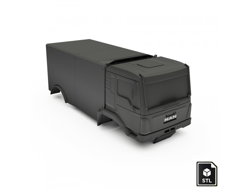 STL files for 3D printing of the model truck MAN of the South Racing team in 1:12 scale. This model is our simplest and lightest model we have so far. The truck is compatible with our RC Truck Model chassis.
