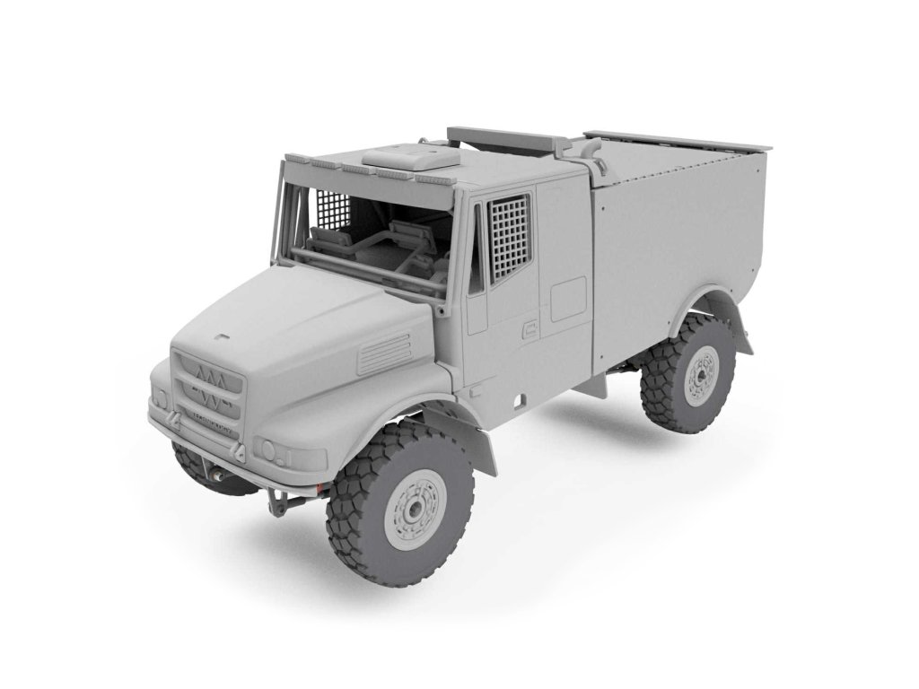 Model kamion, který je dodáván jako stavebnice včetně elektroniky. Model je nutné vybrousit, nabarvit, polepit a poskládat. Součástí balení nejsou barvy ve spreji, kit ve spreji a brusné houby.
