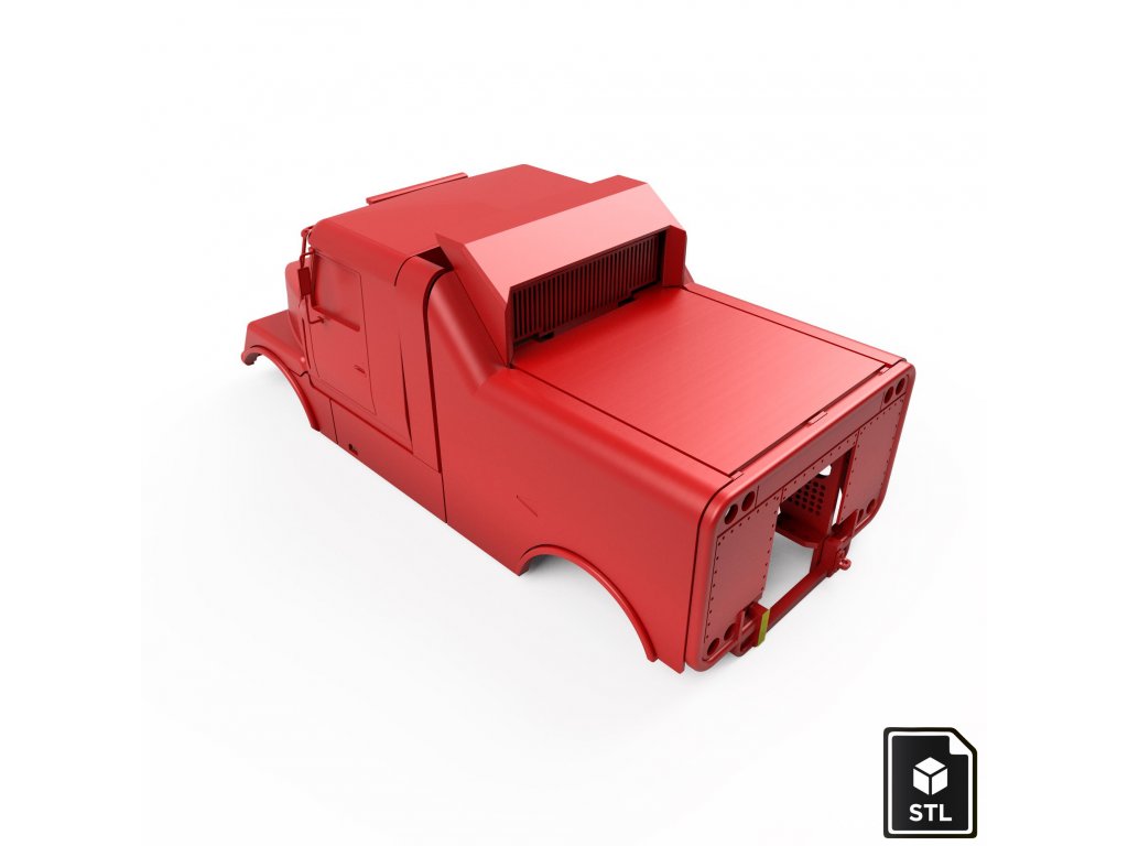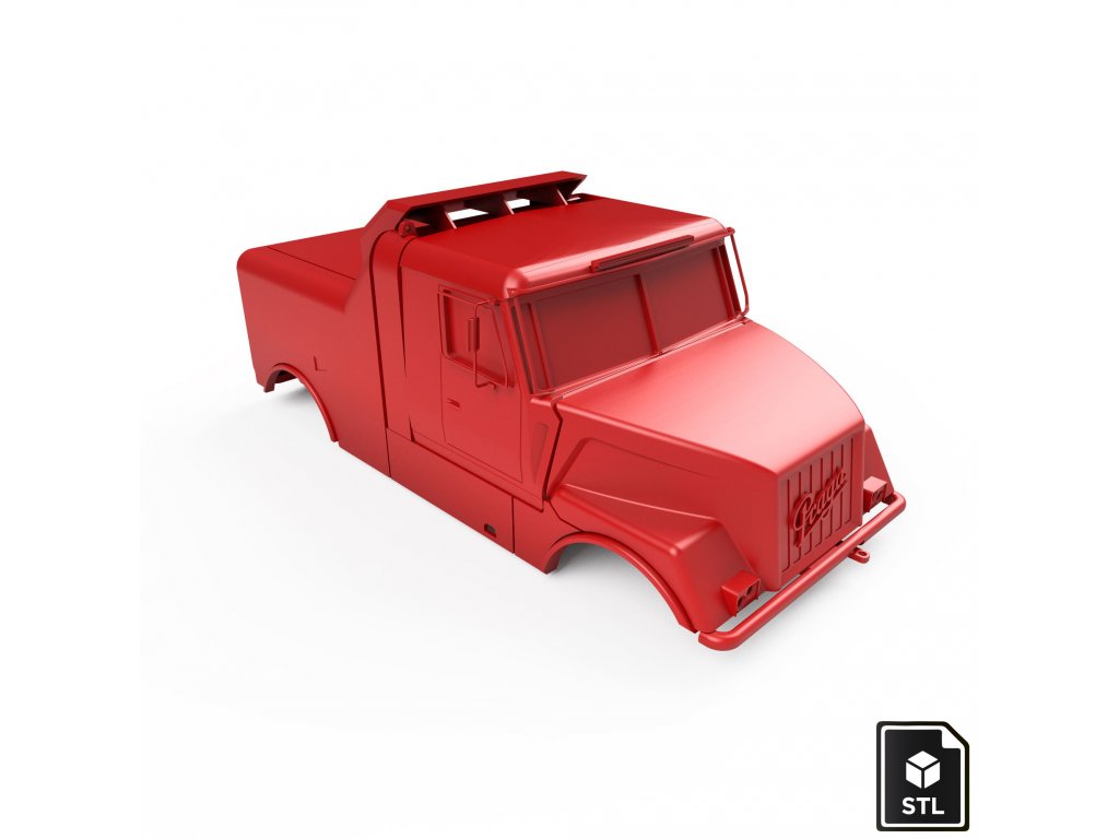 STL soubory pro 3D tisk modelu kamionu PRAGA v měřítku 1:12. Kompatibilní s podvozkem pro RC Truck Model naší konstrukce.